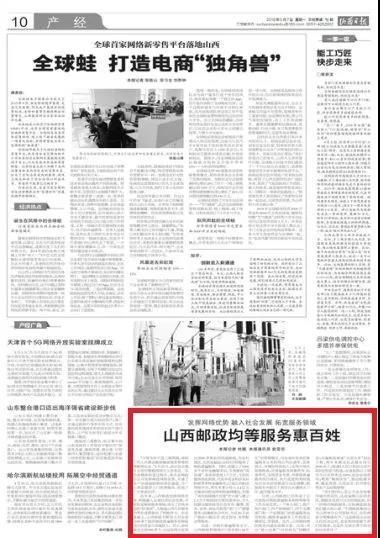 同時,山西郵政還建立了6200余個農(nóng)村金融服務(wù)站,布放郵政“商易通”、助農(nóng)取款機1.7萬臺,為農(nóng)民提供助農(nóng)取款、代發(fā)養(yǎng)老金和涉農(nóng)補貼款等多種金融服務(wù);打造公共配送網(wǎng)絡(luò)平臺,兩年來累計投入1.4億元實施省內(nèi)郵運網(wǎng)和投遞網(wǎng)建設(shè),實現(xiàn)了省內(nèi)縣級城市互寄“次日遞”;建立1.2萬個郵政綜合便民服務(wù)站,為人民群眾提供政務(wù)信息發(fā)布、繳費、票務(wù)、農(nóng)資、商品代購等“家門口”便捷服務(wù);組建郵農(nóng)合作社,為近20萬農(nóng)戶提供小額信貸、技術(shù)指導(dǎo)、農(nóng)資配送等服務(wù)。