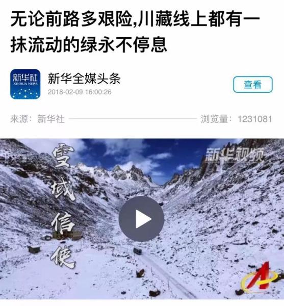 新華社:無論前路多艱險,川藏線上都有一抹流動的綠永不停息