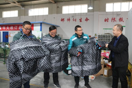 “這擋風被真厚實。”11月17日,河南省衛輝市郵政分公司“三合一”郵件處理場地的投遞員們拿著新發放的棉帽子、棉手套、電動車擋風被等御寒保暖勞保用品感慨道。□劉艷玲 攝