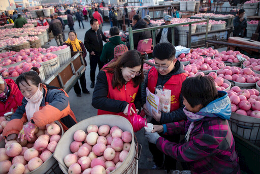 進入生產(chǎn)旺季,山東省棲霞市郵政分公司機關(guān)各職能部門、專業(yè)部門黨員和入黨積極分子共20多人組成了機關(guān)黨員突擊隊,他們身著“黨員志愿者”紅馬甲,活躍在蘋果收購市場、街道小區(qū)、農(nóng)戶家中,支撐旺季業(yè)務(wù)發(fā)展,用實際行動踐行了“一個黨員就是一面旗幟”的莊嚴(yán)承諾。圖為該分公司機關(guān)黨員突擊隊到蘋果收購市場,為果農(nóng)送上暖手、暖身、更暖心的熱水、熱豆?jié){、熱雞蛋、勞保手套,幫助果農(nóng)抬蘋果,并提醒他們“蘋果款要及時存到正規(guī)銀行,以防被偷盜、被詐騙”。 □張紅霞 唐子清 攝影報道