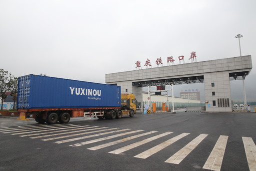 運郵集裝箱進入中國郵政重慶國際郵件互換局鐵路口岸中心。