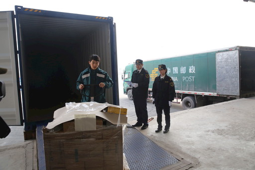 重慶郵政在海關監管下取出進口測試郵件。
