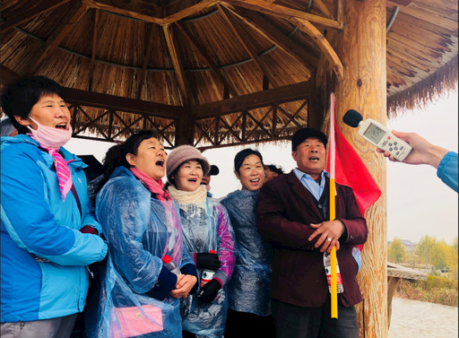 寧夏分公司健步走活動中的“歌聲嘹亮”環節。