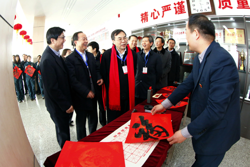 劉愛力觀看北京機(jī)要通信局員工書寫“福”字,為大家送上新春祝福