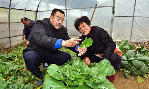 王龍民(左一)從小生長在農(nóng)村,他在農(nóng)作物生長方面算得上是一位“土專家”,菜農(nóng)們遇到問題,總愛找他尋求解決方法。