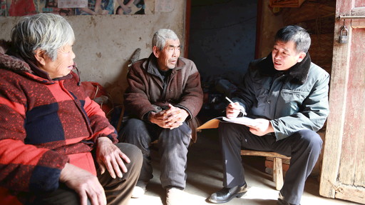 今年1月,殷勇到泗洪縣歸仁鎮村莊走訪調研獨生子女家庭養老問題。張成  攝