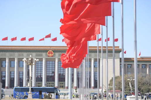 她們今天每個人都不約而同地選擇了紅色上衣,和人民大會堂、天安門廣場上的紅旗相互映襯,紅色是今天的主題,這紅是不斷涌動的紅,這紅是希望的紅。