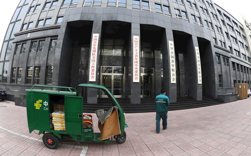 郵政快遞小哥來到共青團中央等部門投送郵件。李旭昌  李巍  攝