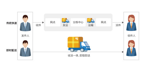 傳統快遞企業的作業模式已經不能滿足同城業務客戶對時限的極致需求,分揀和中轉是傳統快遞的必經程序,卻成為阻礙“當日達”的主要因素。以閃送為代表的“即時配送”企業依靠直送的方式,“砍掉”了所有中轉分揀環節,分鐘級計算的配送標準遠超傳統快遞企業。