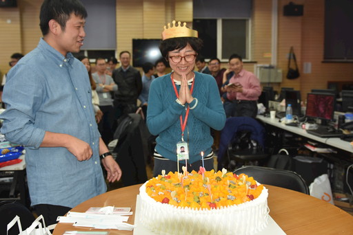 在“雙11”保障現(xiàn)場為員工慶祝生日。