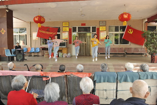 臺上充滿青春活力的歌舞,與臺下老人們的笑聲、掌聲,顯得那么和諧。
