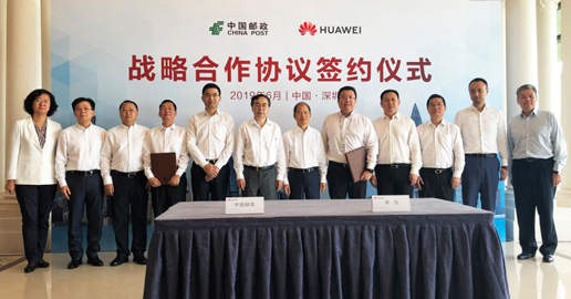 6月5日,中國郵政集團公司與華為公司簽署戰略合作協議。中國郵政集團公司董事長劉愛力、總經理張金良與華為公司輪值董事長徐直軍出席儀式,中國郵政集團公司副總經理溫少祺與華為公司副總裁兼中國區總裁魯勇代表雙方簽署了協議。
