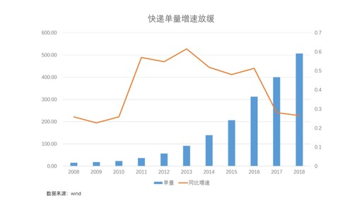盡管電子商務市場是過去10年中國消費市場的最大推動力,但如今電子商務市場的發展速度也明顯下降,年度電子商務交易額增速已從2014年的59.4%逐步降至2018年的8.5%。受此影響,我國快遞業也正式告別爆炸性增長時期(見圖表1),開始步入高質量發展階段。然而,現階段快遞行業效率偏低、成本偏高的問題仍然存在,是行業正式進入高質量發展階段的主要“瓶頸”之一。