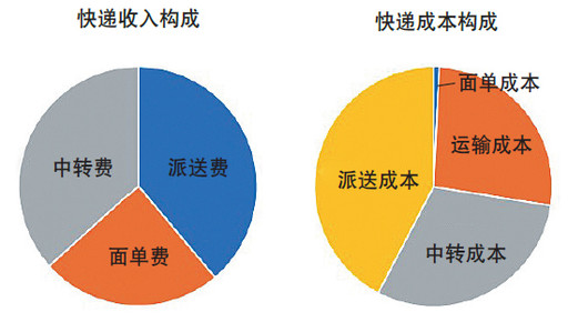 從快遞運行環節主要收入與成本的貢獻情況看,分揀中心的中轉環節是收入占比與成本占比差額最高的環節(見圖表3)。
