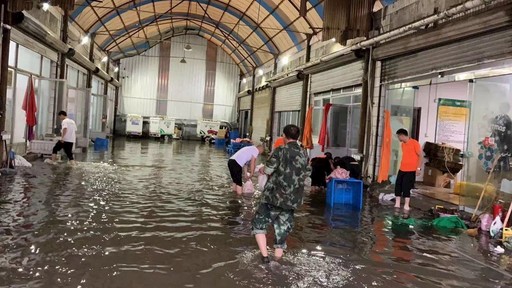 山東濟(jì)南:濟(jì)南市郵政寄遞事業(yè)部歷城區(qū)工業(yè)北路營業(yè)部受災(zāi)嚴(yán)重,員工及時轉(zhuǎn)移郵件及物資。李小樂  攝