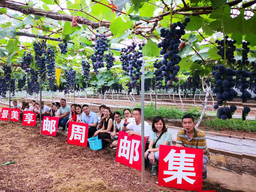 四川省資陽市雁江區(qū)郵政分公司結(jié)合鄉(xiāng)村旅游開展“葡萄采摘+集郵周”活動。賴小洪 攝影報道