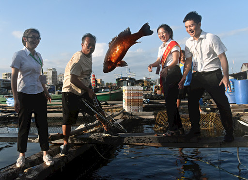 圖為陵水縣支行支持的新村鎮(zhèn)石斑魚養(yǎng)殖戶林家偉喜獲豐收。□海南記者 梁磊 攝影報(bào)道
