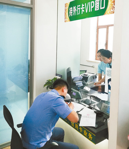 東郊營業所靠服務開拓市場,“來的都是客,服務不打折”,專門開設了“持外行卡VIP窗口”。寧國富  攝
