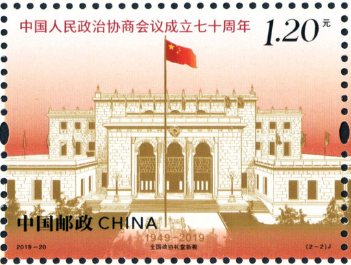 今年是新中國成立70周年,也是中國人民政治協商會議成立70周年。70年來,人民政協積極投身建立新中國、建設新中國、探索改革路、實現中國夢的壯麗實踐,走過了輝煌的歷程,建立了歷史的功勛。為此,中國郵政于9月21日發行《中國人民政治協商會議成立七十周年》紀念郵票一套2枚。