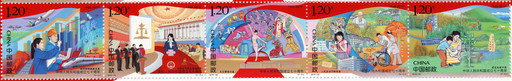 中國郵政即將于10月1日發行《中華人民共和國成立七十周年》紀念郵票一套5枚,小型張1枚,即從“五位一體”總體布局的角度進行展示。郵票名稱分別為“經濟持續健康發展”“社會主義民主政治推進”“文化繁榮興盛”“人民生活不斷改善”“建設美麗中國”,小型張圖案名稱為“祝福祖國”。另與香港郵政、澳門郵電共同印制發行同題材小型張本票1本,內含中國郵政、香港郵政、澳門郵電小型張各1枚。