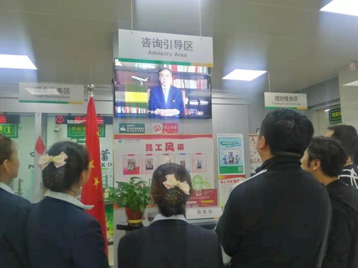 陜西省銅川市新街郵政營業所員工和客戶一起觀看世界郵政日報道。王建強  攝