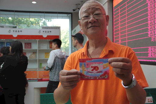 12時多,會議室里的集郵愛好者依舊專注地觀看電視直播?!拔野选液臀业淖鎳恼Z郵資明信片寄給親朋好友,把中國人的這份驕傲傳遞出去?!奔]愛好者王先生購買了很多明信片,并在上面寫下祝福語。