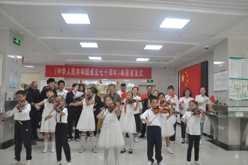 10月1日,新疆維吾爾自治區16個市級郵政分公司同步舉行了《中華人民共和國成立七十周年》紀念郵票首發活動。哈密市分公司的首發活動在小朋友美妙的小提琴演奏聲中拉開帷幕,伴著悠揚的琴聲,集郵愛好者和郵政員工一同歌唱《我和我的祖國》,氣氛莊重而熱烈。此次活動吸引了大批學生、老師、集郵愛好者和廣大群眾前來參加。該分公司講解員為小朋友現場講解集郵小知識,培養孩子們的集郵興趣。小朋友們熱情高漲,紛紛到集郵柜臺參觀。(楊芹 攝影報道)