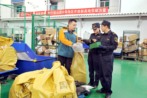 日前,山西省郵政分公司開通了太原至美國芝加哥的國際航空直達郵路。該郵路每周三、周五、周日共3個頻次,通過直封、直飛、直達,山西寄達美國全境的國際郵件全程時限將縮短2天以上,有助于更好地推動全省跨境電商業務的快速發展。圖為海關和郵政人員共同查驗發往美國的郵件?!跤浾?nbsp; 武亞亮 攝影報道