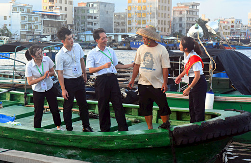 蔡德余和他的團(tuán)隊成員向漁民了解貸款需求。