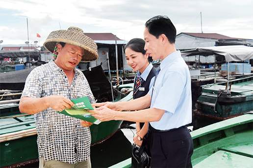 蔡德余是這片蔚藍(lán)海域上懷揣普惠金融夢,貼心服務(wù)“三農(nóng)”的郵儲人的一員。據(jù)介紹,陵水縣支行積極支持海洋漁業(yè)發(fā)展,持續(xù)聚焦海水養(yǎng)殖金融服務(wù)領(lǐng)域,深耕當(dāng)?shù)靥厣a(chǎn)業(yè),積極推進(jìn)信貸結(jié)構(gòu)調(diào)整,通過家庭農(nóng)場(專業(yè)大戶)貸款、小額循環(huán)貸(信用村)貸款等信貸產(chǎn)品,不斷優(yōu)化辦理手續(xù)、完善誠信體系建設(shè),解決了海產(chǎn)養(yǎng)殖戶融資難、融資貴問題,消除了養(yǎng)殖戶的后顧之憂,真正做好疍家人的“貼心人”。