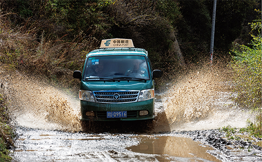 每到雨季,高原牧區(qū)坑坑洼洼的土路就變成了連片的水坑,郵車根本無法擇路而行,隨時都有可能陷進(jìn)水坑。