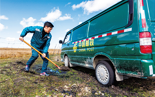 “夏天還好點,冬天最讓人惱火。”哈弄奪機(jī)說,若爾蓋一年中大半時間都在下雪,茫茫大草原上寒風(fēng)刺骨,道路積雪結(jié)冰,車輛經(jīng)常會滑下路基或陷進(jìn)雪坑。在紛飛的大雪中出班,擋風(fēng)玻璃結(jié)冰,雨刮器被凍住,只能走走停停,不時除去擋風(fēng)玻璃上的冰雪,10多公里的投遞路往往要走一個多小時。