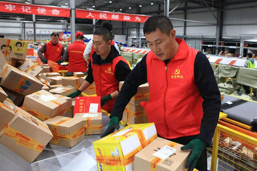 “雙11”戰(zhàn)役打響以來,河南郵政包裹收寄量、郵件處理量連創(chuàng)新高。面對(duì)郵件“洪峰”,連日來,河南郵政各級(jí)黨組織和廣大黨員充分發(fā)揮戰(zhàn)斗堡壘和先鋒模范作用,成立了黨員先鋒隊(duì)、志愿服務(wù)小隊(duì)等,深入郵件轉(zhuǎn)運(yùn)、收寄環(huán)節(jié),與基層員工一起奮戰(zhàn),以必勝的信心、昂揚(yáng)的斗志、十足的干勁,確保“雙11”郵件快進(jìn)快出,網(wǎng)運(yùn)生產(chǎn)平穩(wěn)有序。圖為焦作市郵政分公司黨員在郵件處理中心參與分揀。□李平 攝影報(bào)道