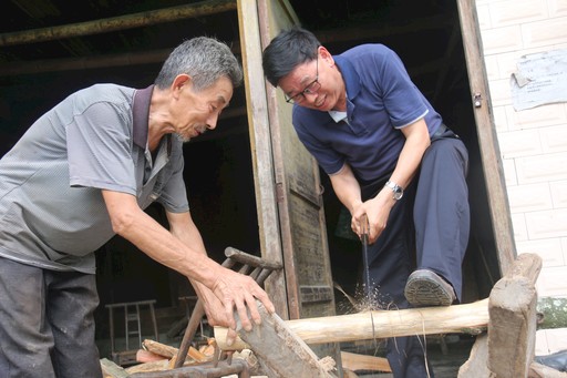 陳澤維幫助貧困戶鋸柴火。李蓉  攝