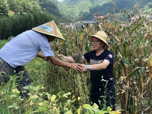 陳澤維幫助貧困戶收獲黃豆。李蓉  攝