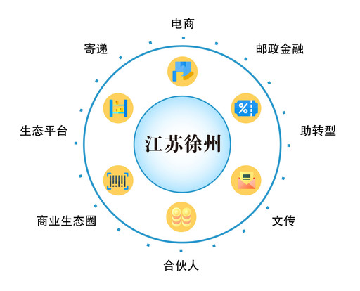 正如徐州郵政云郵眾創(chuàng)基地的案例一樣,各地郵政都在積極構(gòu)建自身協(xié)同體系,探索郵政特色商業(yè)生態(tài)圈發(fā)展模式。在河南新鄉(xiāng),郵政客戶的積分不僅可以用來(lái)支付郵費(fèi)、購(gòu)買簡(jiǎn)易險(xiǎn)、農(nóng)資、個(gè)性化郵票、兌換郵政電商產(chǎn)品,還可以用來(lái)加油、給孩子訂閱教材等;在湖南株洲,與郵政合作,就相當(dāng)于跟整個(gè)黃桃電商產(chǎn)業(yè)鏈合作;在江蘇徐州,郵政電商客戶可以獲得郵政電商孵化基地提供的“金融+寄遞+文創(chuàng)+電商+第三方服務(wù)+政府引導(dǎo)”等一攬子電商綜合服務(wù)。