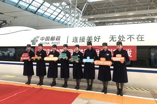 1月8日,中國郵政“連接美好 無處不在”高鐵冠名列車首發(fā)儀式在上海虹橋站舉行。隨著列車緩緩駛出,中國郵政與中國高鐵強強聯(lián)合,守護每位春運旅客的歸家路。