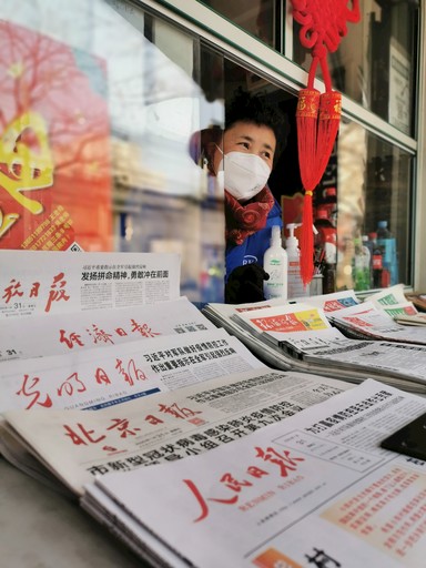 9:30,一位老大姐過來買《北京日報(bào)》和《參考消息》,還有人來打聽晚報(bào)和疫情情況;9:40,一個(gè)快遞小哥兒習(xí)慣地把車停在報(bào)刊亭旁邊,掃碼4塊錢買了《北京日報(bào)》《參考消息》《環(huán)球時(shí)報(bào)》,直說好幾天沒看報(bào)了。從除夕到初七,這個(gè)報(bào)刊亭銷售報(bào)刊1599元,《人民日報(bào)》《北京日報(bào)》《參考消息》《北京晚報(bào)》累計(jì)銷售近500份。