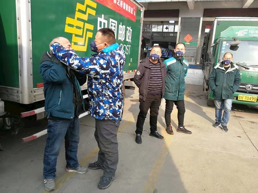 為保證一線員工安全生產(chǎn),山西省忻州市郵政分公司工會(huì)第一時(shí)間為投遞、網(wǎng)運(yùn)一線員工發(fā)放了口罩,并使用消毒液對(duì)辦公、生產(chǎn)場(chǎng)所充分消毒,做好一線防護(hù)工作。忻州市各縣級(jí)郵政分公司也積極響應(yīng),為一線員工購(gòu)買(mǎi)口罩,保證員工防護(hù)到位。圖為忻州市分公司員工在出班前認(rèn)真戴好口罩?! 鯊埦?nbsp; 攝影報(bào)道