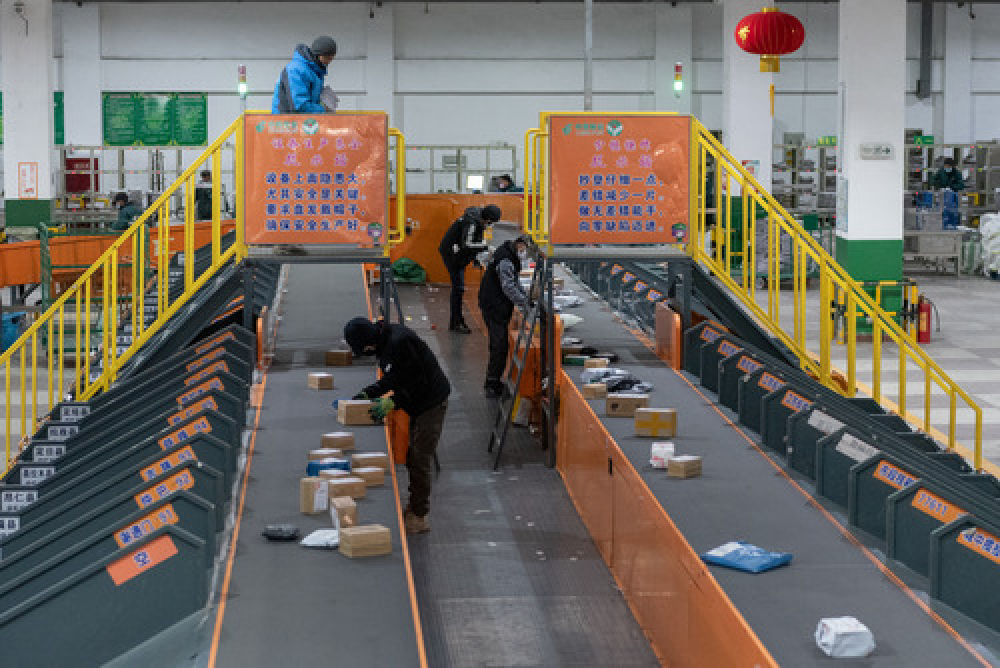 1月31日,工作人員在拉薩郵區(qū)中心局郵件處理中心分揀郵件。新華社記者 侯捷 攝