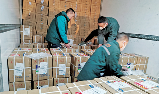 四川郵政員工趕發(fā)防疫物資。 □周旭 攝影報道