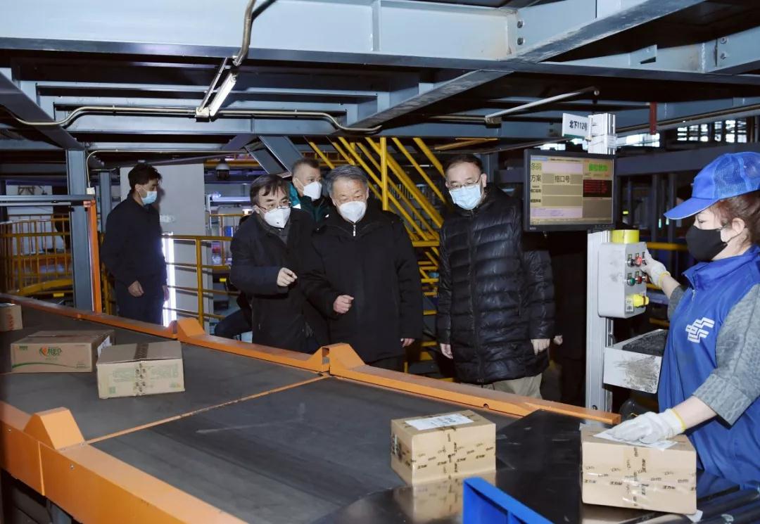 楊傳堂在北京郵件綜合處理中心了解了當前郵件快遞及捐助物資專車發運等工作,詳細詢問了郵件寄遞、員工返崗及防護物資配備等情況。