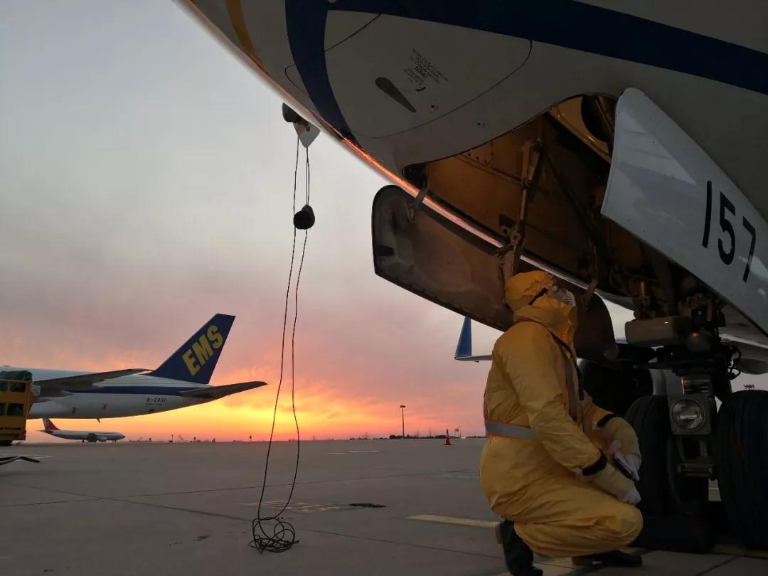 郵航武漢駐站機(jī)務(wù)對(duì)飛機(jī)進(jìn)行過站檢查