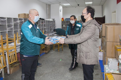 2月19日,馬敏杰得知一線員工防護用品緊缺的情況后,四處聯(lián)系,最終購進100個口罩,贈送給投遞員?!耙欢ㄒ龊梅雷o措施?!痹谕哆f班,馬敏杰只留下一句話便轉(zhuǎn)身離開了。