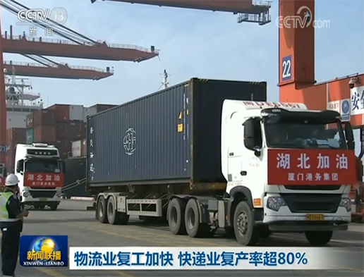 央視網消息(新聞聯播):物流業對統籌做好疫情防控和經濟社會發展工作具有重要支撐作用,記者從國務院新聞辦3月6日舉行的發布會上了解到,目前,物流業復工有序,速度加快。