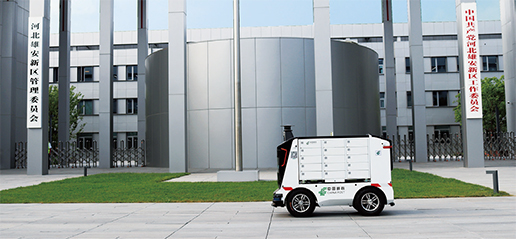 2019年 8月7日,中國郵政自主研發的無人投遞車亮相雄安新區。