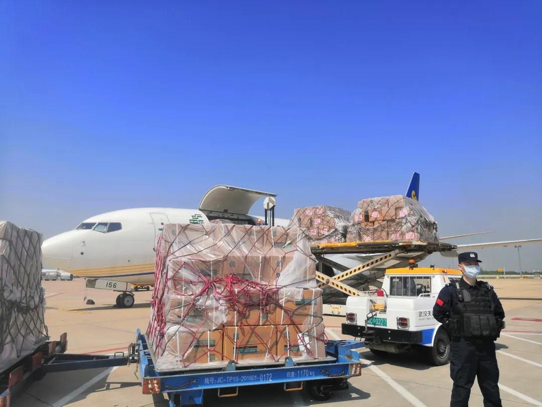 該批物資于4月15日凌晨2時至5時陸續到達武漢郵區中心局航站,為保障第一批物資及時啟程,處理中心郵政員工與時間展開賽跑,徹夜未眠,以邊分揀邊安檢的方式將45噸醫用物資分門別類規范整理,并在上午7時安檢完畢等候裝機。