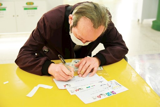 安徽省合肥市的一位集郵愛好者正在自制《眾志成城 抗擊疫情》郵票首日封。陳璨 頓中振 攝