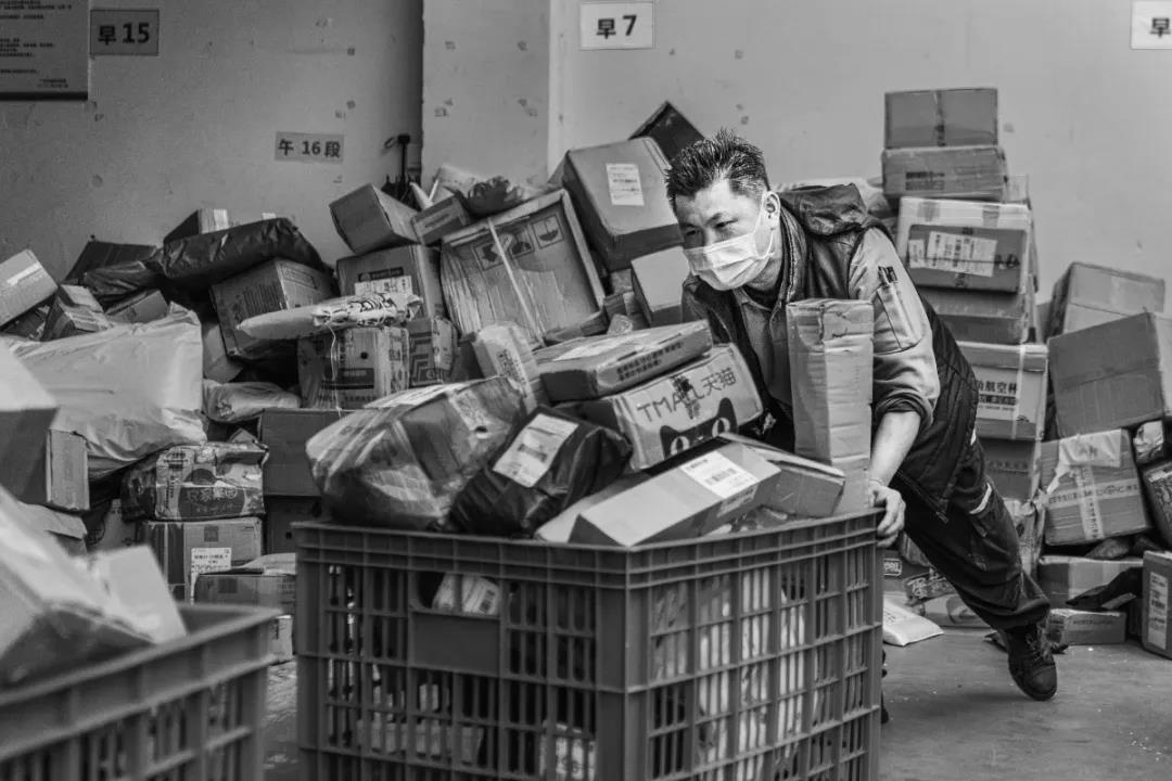自疫情發生以來,廣州郵政人從沒有停止過為人民群眾派送郵件報刊,一直踐行著“人民郵政為人民”的神圣使命。作品拍攝于2020年3月廣州市郵政分公司曉港西馬路投遞部作業現場。