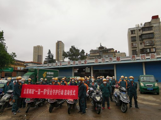 為貫徹落實全國“一盔一帶”安全守護行動部署要求,全力促進快遞員佩戴安全頭盔行動,5月27日,云南省交警總隊車管處、省寄遞事業部速遞業務責任中心、昆明市郵政分公司共同召開云南警郵聯動“一盔一帶”啟動大會,會上,省交警總隊車管處相關人員為快遞騎手普及“一盔一帶”相關知識,開展“一盔一帶”知識有獎搶答,并現場為快遞員發放頭盔。□婁華 攝影報道